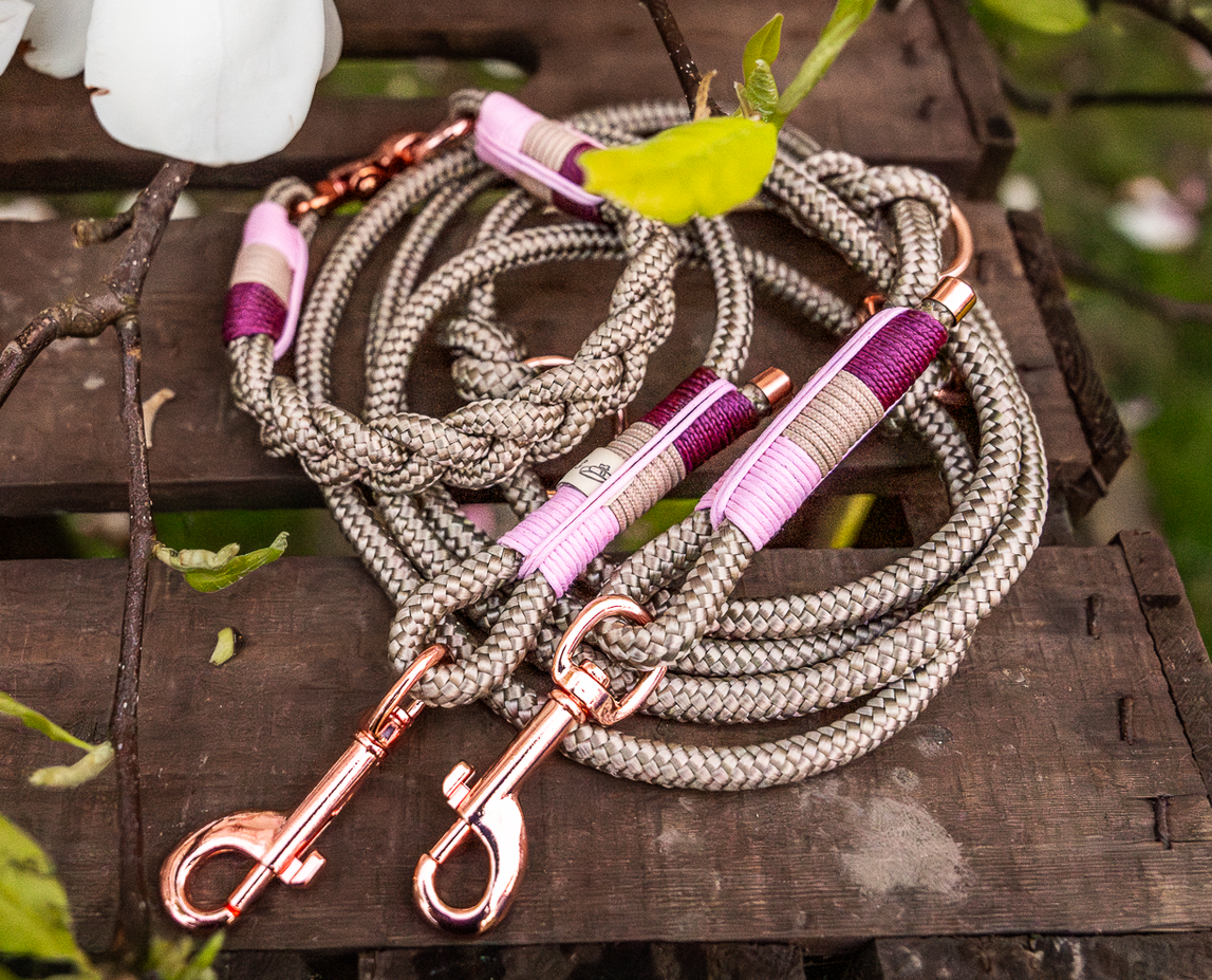 Schritt für Schritt begleiten wir euch in unserem ca. 4-stündigen Workshop dabei, ein zweireihiges Halsband mit Karabiner- oder Zugstopp-Verschluss und eine dreifach verstellbare Leine anzufertigen. Dabei vermitteln wir euch die Grundtechniken unserer Arbeit mit Tau. Am Ende nehmt ihr ein handgemachtes, auf euren Liebling zugeschnittenes und langlebiges Set aus Tau mit nach Hause.